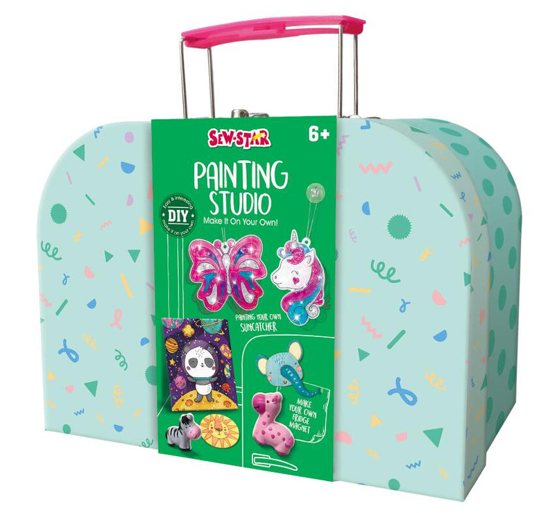 ¡Un taller de creatividad en una sola maleta! Este set es perfecto para que los niños y niñas exploren distintas técnicas artísticas, desde pintar atrapasoles mágicos, cuadros en lienzo y madera, hasta crear divertidos imanes para el refrigerador. Con colores vibrantes, moldes y accesorios incluidos, los pequeños artistas podrán dar rienda suelta a su imaginación.