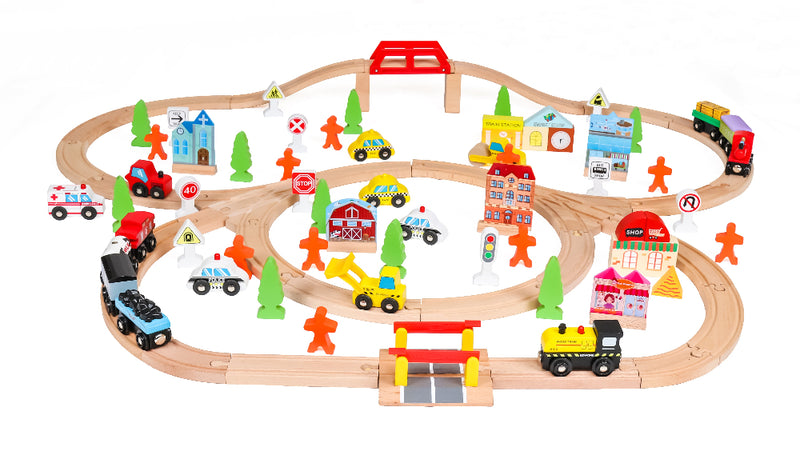 Set de Tren de Madera con Pista y Ciudad – 100 piezas